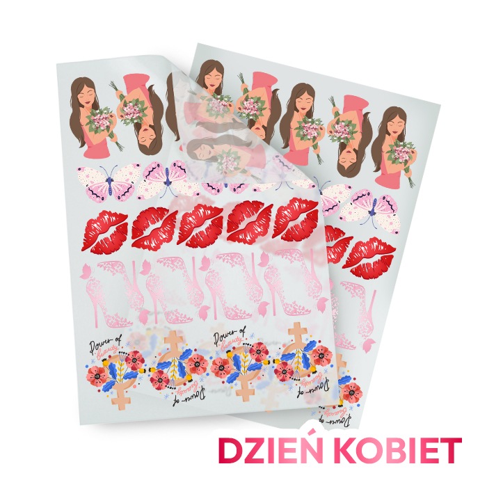- gotowy arkusz A3 z nadrukiem DTF – motyw Dnia Kobiet